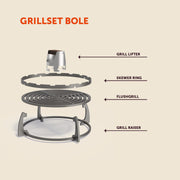 - De grillset bestaat uit: Grill lifter, Flushgrill en Grill raiser