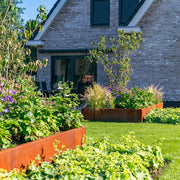 De CARREZ cortenstaal plantenbak geeft tuinen een krachtige, warme uitstraling dankzij de oranjebruine kleur die ontstaat door een natuurlijke roestlaag.
