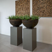 De sokkel is perfect te gebruiken als voetstuk voor een kunstwerk, waterschaal, vuurschaal of plantenobject. Dankzij de tijdloze uitstraling combineert aluminium moeiteloos met groen, hout en natuursteen, waardoor het element past in zowel moderne als klassieke tuinen.