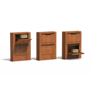 Met zijn minimalistische vormgeving en warme roestkleur past de PACA perfect bij moderne architectuur, strakke tuinen en industriële buitenruimtes. De combinatie van robuuste materiaaldikte en verfijnd design zorgt voor een duurzame en stijlvolle oplossing voor veilige pakketontvangst.