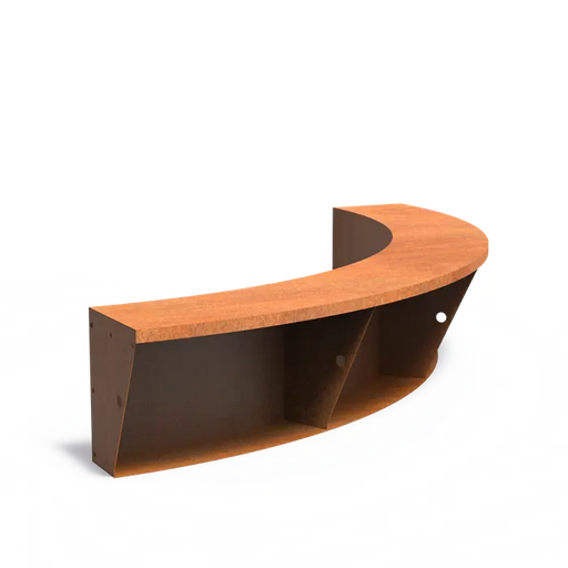 Stützwand mit Sitzrand - Innenbogen | 150 × 150 x 40 cm | Cortenstahl