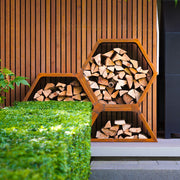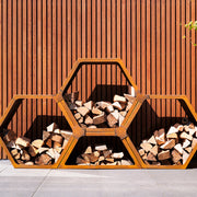Cortenstahl modulares Holzlager HEX | 91,5 × 40 × 40 cm