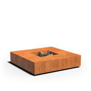 QUAD Feuertisch Holzfeuer aus Cortenstahl 120×120×28 cm
