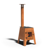 De Forno DAMM buitenkeuken van cortenstaal combineert strak, retro-geïnspireerd design met praktische veelzijdigheid. Het robuuste model doet denken aan grootmoeders fornuis, maar is volledig ontworpen voor het moderne buitenleven.