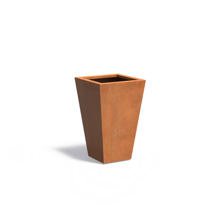 Dankzij het compacte, taps toelopende ontwerp is de TAP uitermate geschikt voor voortuinen, terrassen en entrees. De warme kleur van het cortenstaal – gevormd door een natuurlijke roestlaag – geeft deze plantenbak een unieke, levendige uitstraling.